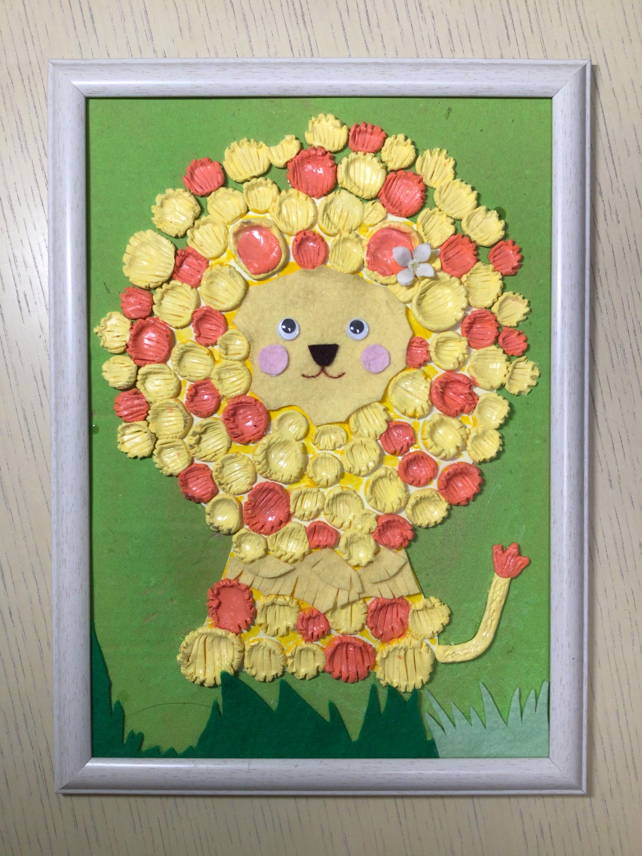 カラー粘土を同じ大きさに丸め、規則性を考えて配置する立体絵画。